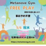 - 【5/6祝日開催】Metamove Gymフリープレイ|事前予約不要で体操遊び放題!
