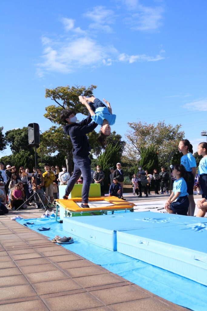 選手クラスとタンブリングクラスの子達がミニトランポリンを使って技を披露します🤸♀️