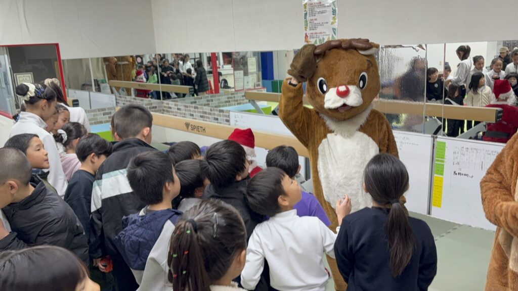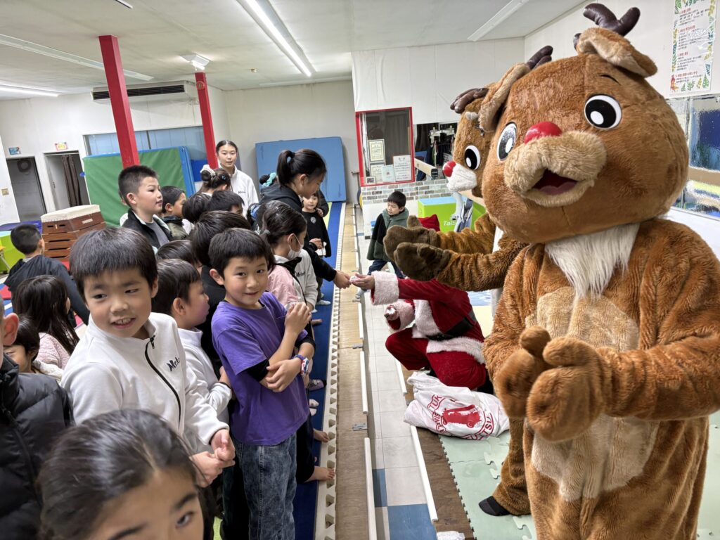 イベント当日はサンタさんが子どもたちにプレゼントを配り、体操クラスの会員さんや兄弟、保護者の皆さんも一緒に楽しい時間を過ごすことができました。実際の参加人数は写真でご覧いただくとして、会場は笑顔であふれ、とてもにぎやかな雰囲気でした。