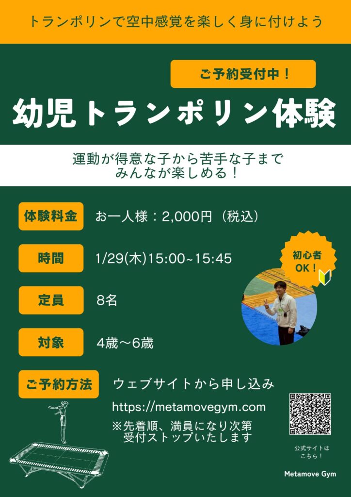 **4歳〜6歳のお子さまを対象とした「幼児トランポリンクラス」**を2026年2月〜新設します。